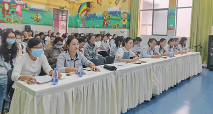 老师们全神贯注地聆听讲座,手中的笔在本子上不停舞动,记录下朱园长讲解的每一个重点,那一行行字迹,是为培育孩子积极汲取知识养分的印记。