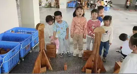 “今天我们就拿积木来做几个火箭”,林志烨跟许诺、秀莹说完就立马动起手来,许诺和秀莹负责搭建火箭底部,那大大的底座是她们努力的成果,一块块积木在小手中传递、拼接。而志烨专注于火箭的箭身,努力让它又高又直。在搭建过程中,有一个小朋友不小心碰倒了部分积木,但大家没有气馁,迅速重新搭建。终于,“嫦娥六号”完成了,接着他们又开始了“长征七号”的搭建,两个火箭终于“完工”,一说起火箭准备要发射了,旁边的几个好朋友也参与了进来,一起倒数“10、9、8、7、6、5、4、3、2、1——点火”,顿时,大家雀跃的声音充满了整个游戏区。