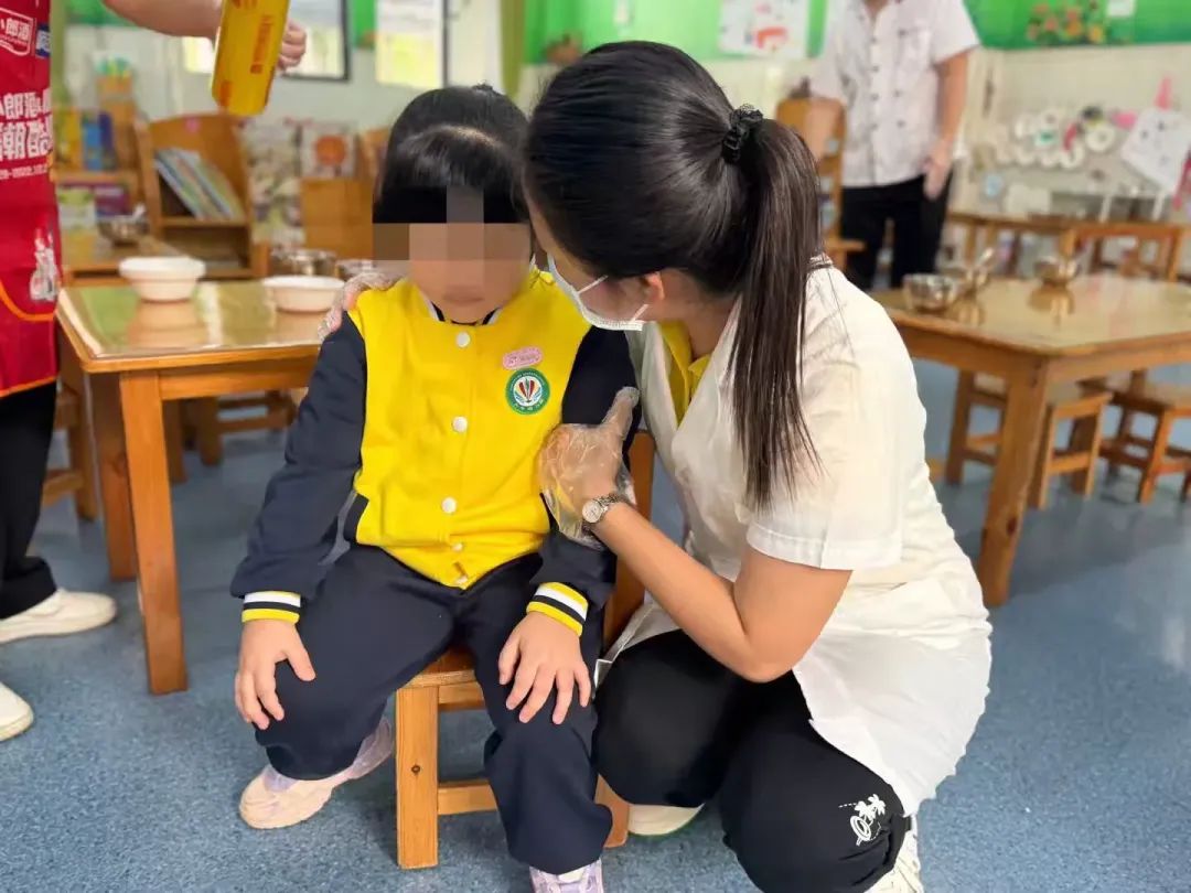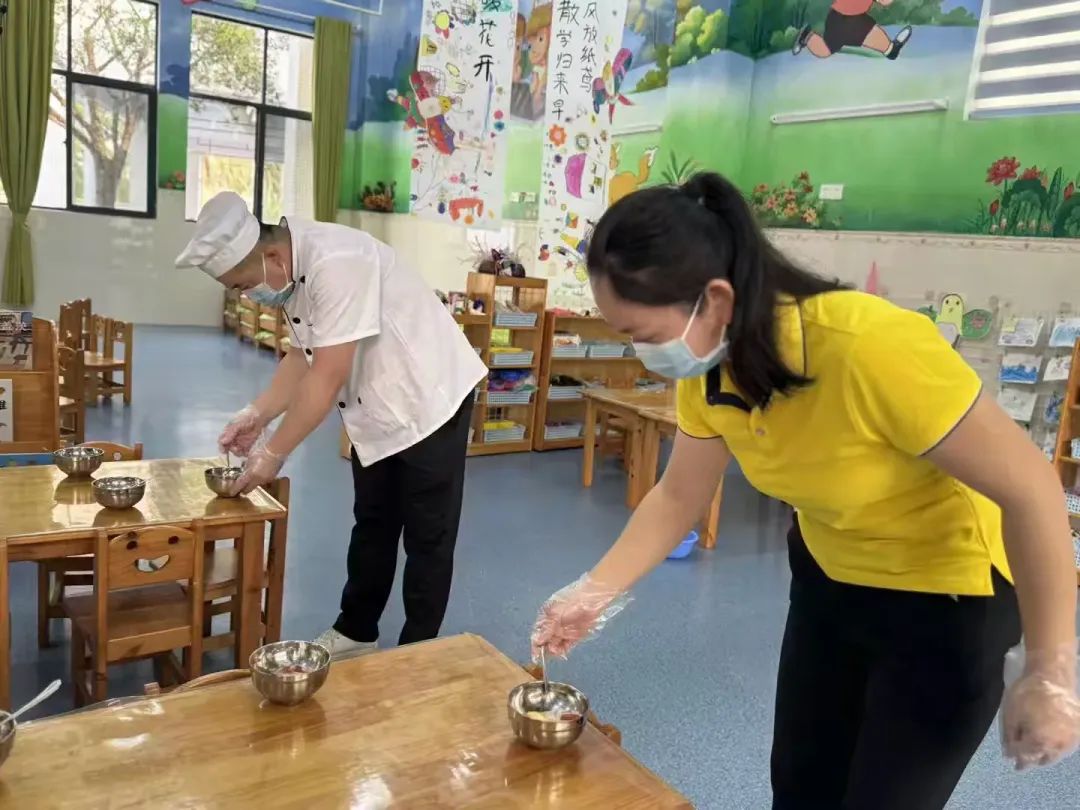 办公室余主任通过广播告知各班级立即停止用餐,并在家园群发布食品安全突发事件消息。各班级班主任立即按照《文昌市第二幼儿园食品安全突发事件应急预案》要求开展排查工作。