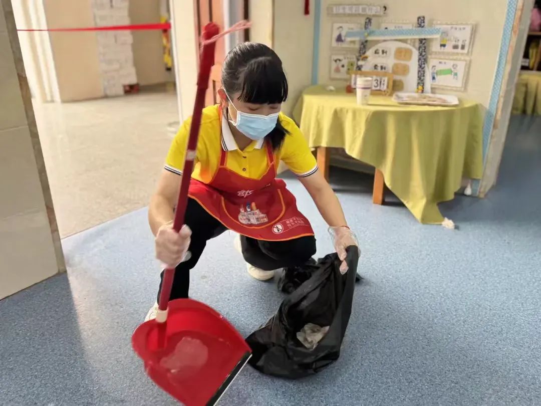 保育员沉着冷静,出现食品突发事件后,第一时间开窗通风,并在保健医的指导下,及时对幼儿呕吐物进行消毒和清理。