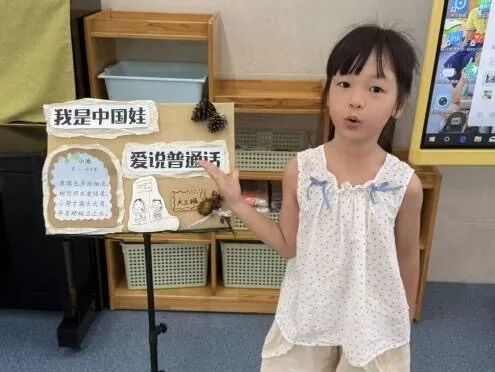 大三班朱清芮与大四班吴芮希小朋友在推普活动中,带领大家一同朗读古诗《小池》。倡议大家从当下出发,学好、讲好普通话,在新征程上奋勇前行。
