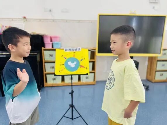 我园围绕推广国家通用语言开展系列推普活动。各班级教师通过趣味儿歌、故事讲述,引导幼儿学说标准普通话,同时组织“亲子普通话共读”活动,让幼儿在互动中感受语言魅力,自觉使用普通话交流。
