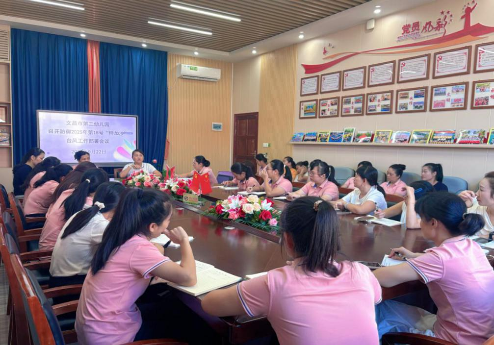 9月22日,我园召开防御2025年第18号“桦加沙”台风工作部署会。曾桂萍园长传达上级部门相关会议精神,要求全体教职工时刻绷紧防御之弦、保持高度重视,实时关注台风最新动态与官方通知,随时做好应急准备,确保各项防御工作不松懈。