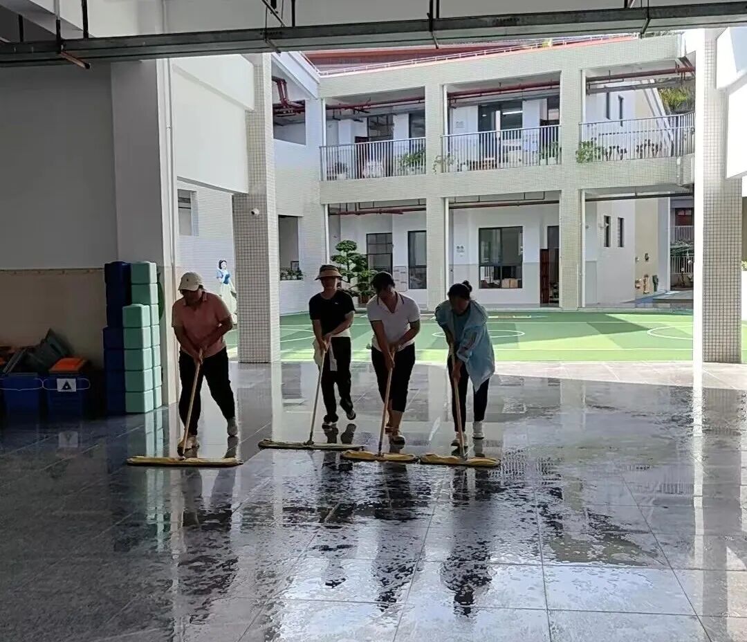 9月25日早上,我园全体教职工提前返岗,齐心协力完成复课准备工作:将教玩具归位,并全面清洁园区环境,为孩子们营造安全整洁的入园环境。