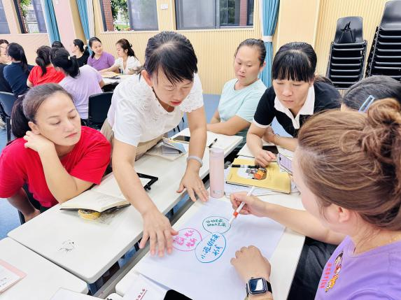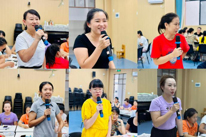 汇报过程中,其他小组或点头称赞,或激烈争论,提出质疑:“中班的提问会不会过于笼统,是不是可以细化提问,更便于幼儿理解?”这种即时的、开放的互动,让思考不再局限于小组之内,而是在全场“噼啪作响”的思辨中,共识逐渐凝聚。