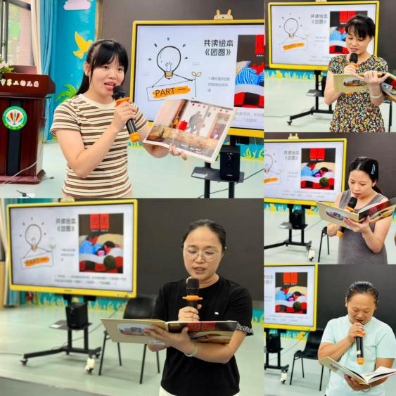 教研伊始,主持人现场随机抽取老师对绘本《团圆》进行分段朗读。让老师们以绘本为媒,来通过自己对绘本内容的解读,有温度的传递故事内涵。