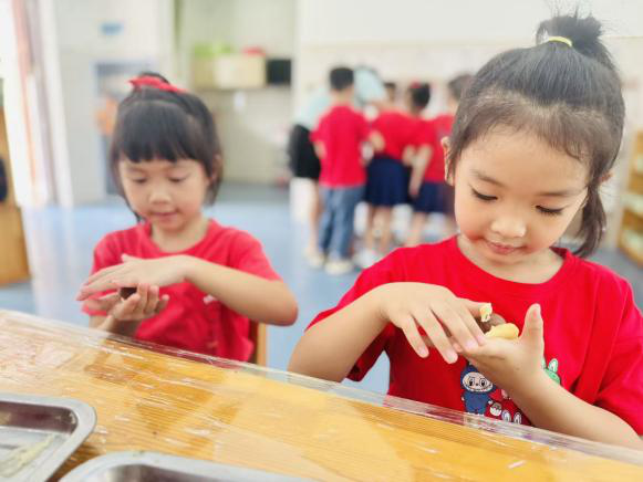结合国庆与中秋节日,我园各班级老师紧扣双节特色开展了一系列教育体验活动:制作月饼、国庆中秋双庆蛋糕、拼接“中国地图”等等,让爱国教育与传统节日文化巧妙融合,在孩子们的心中撒下爱国与传承传统文化的种子,感受双节“家国同庆、阖家团圆”的美好寓意。