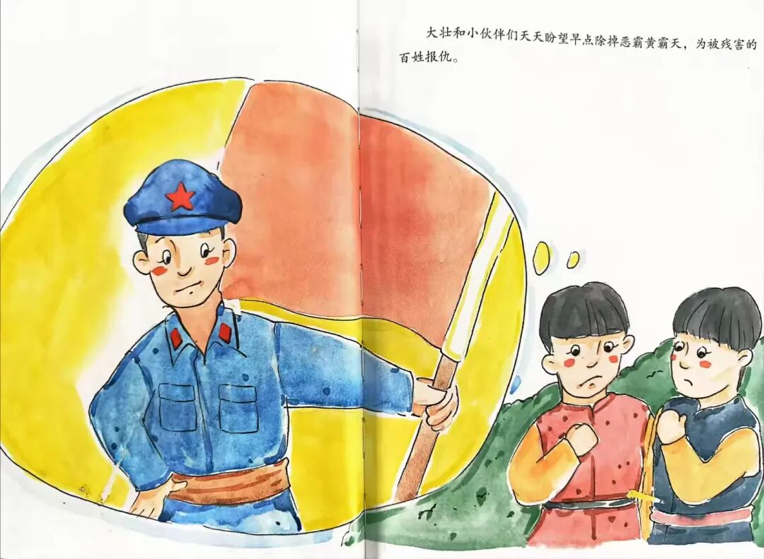 有个小男孩叫田大壮,他生活的地方有鬼子和汉奸,百姓们都生活在水深火热之中,红军战士们解救了大壮和妈妈,恶霸被关进了大牢,小村子解放了,百姓们都很开心。