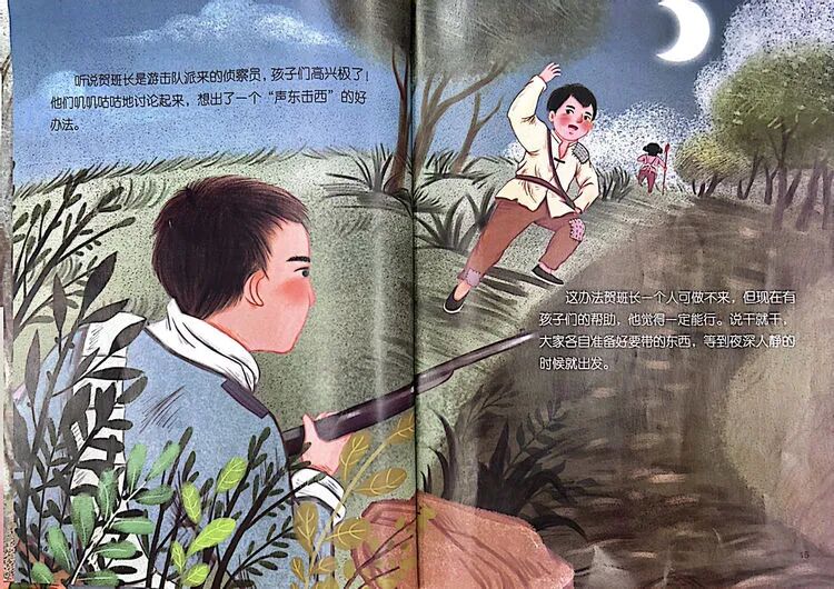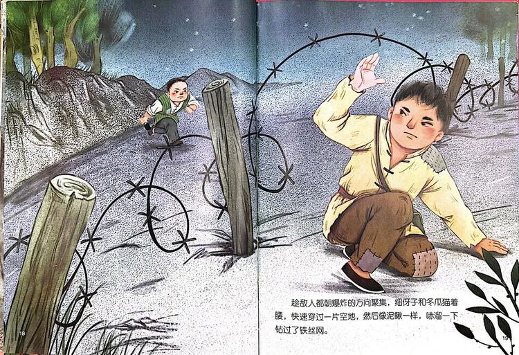《红色小奇兵》是一部面向幼儿的爱国主义教育绘本,以抗日战争为背景,讲述了一群机智勇敢的“小奇兵”如何用智慧和团结精神,巧妙解救被困战友的故事。为了帮助班长侦察敌情,四个“小奇兵”出谋献策,大闹敌营,展现出了有勇有谋的斗争精神。