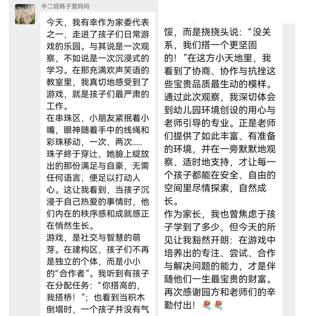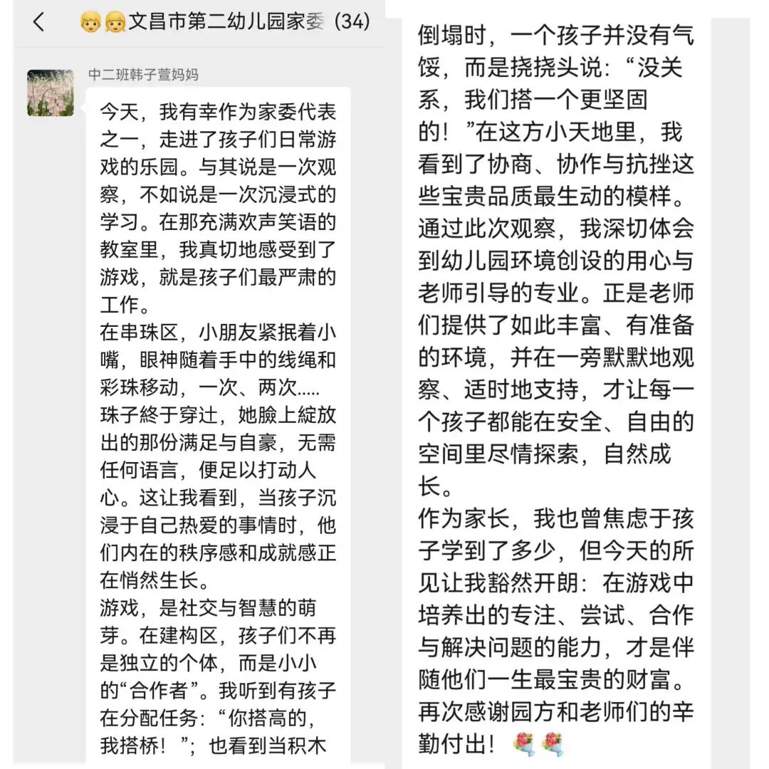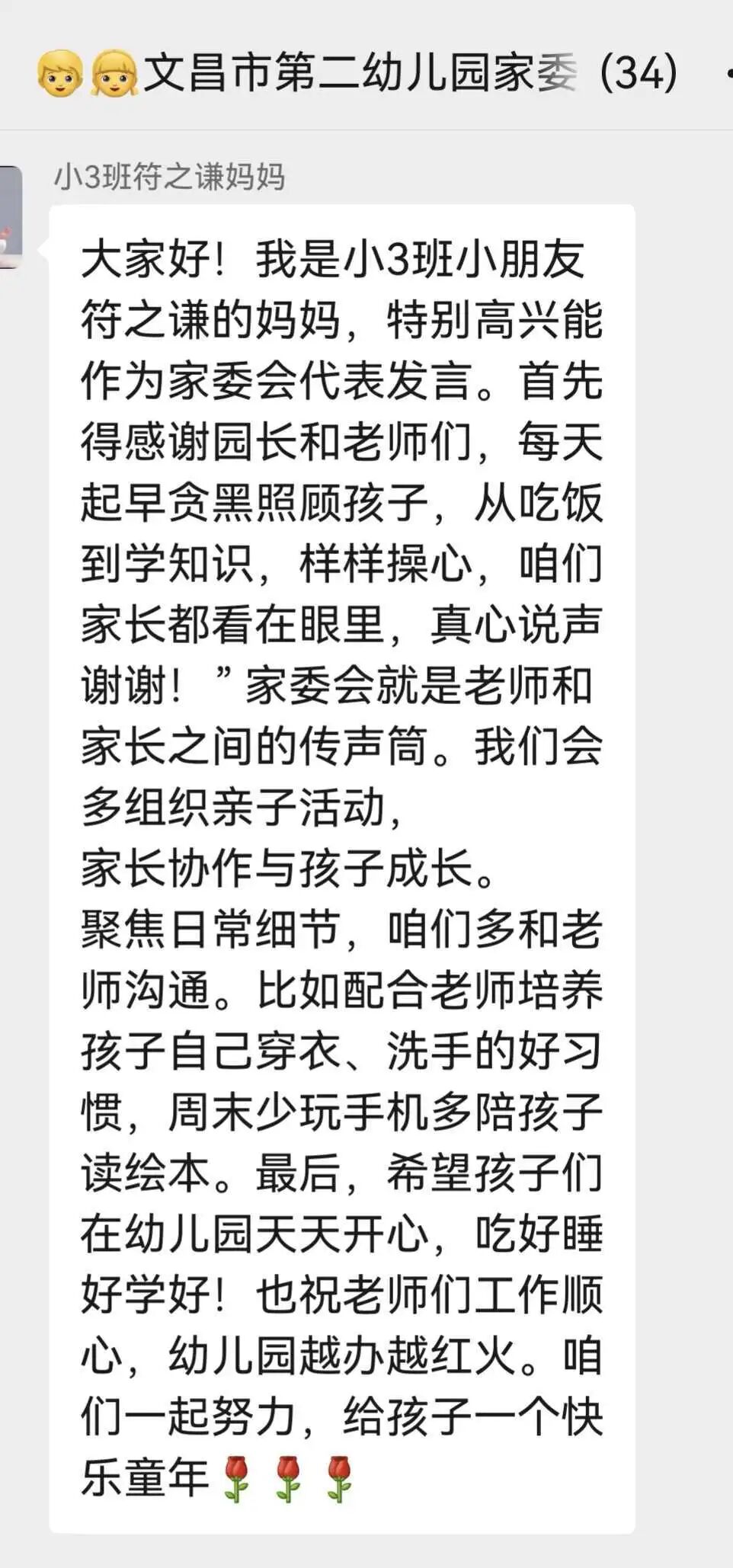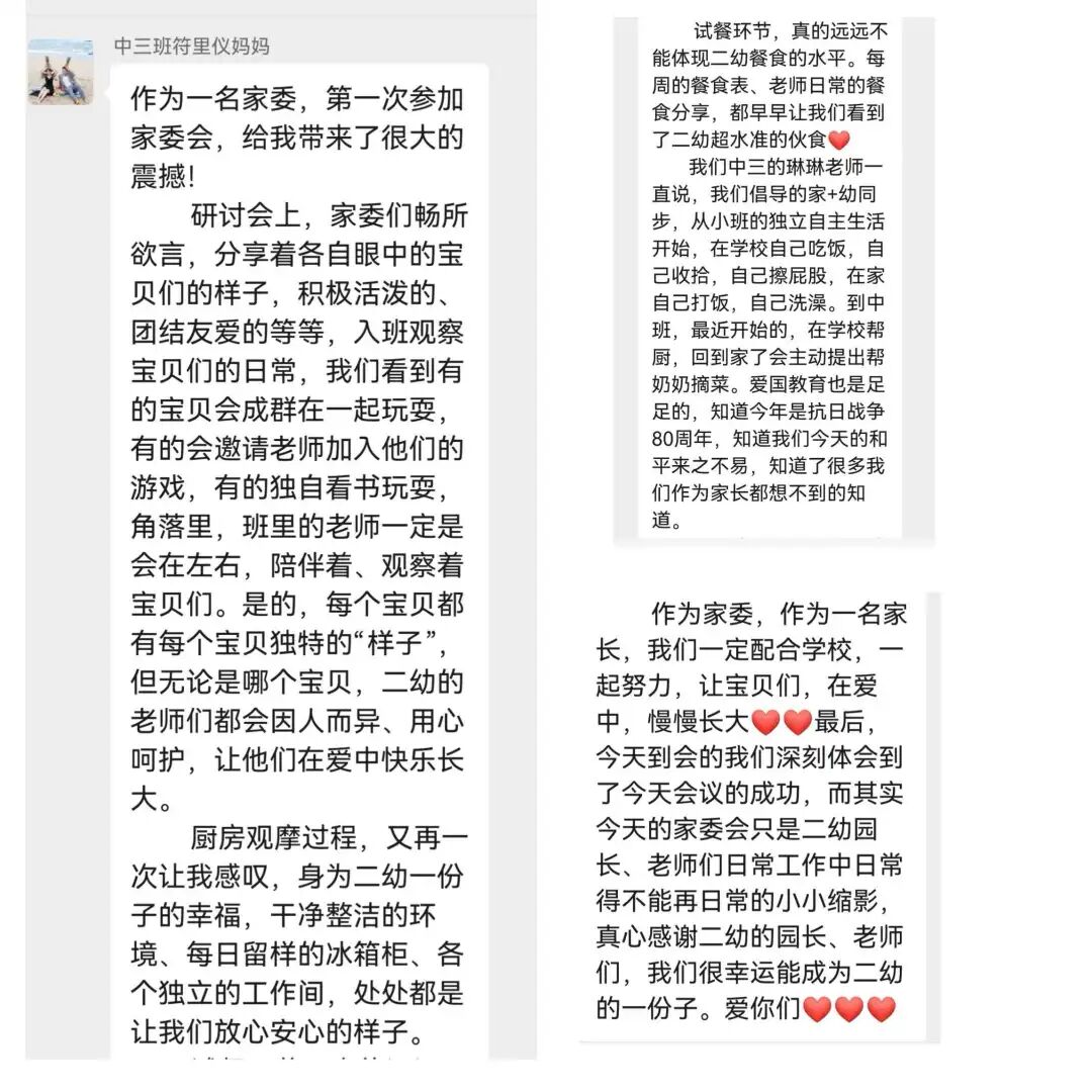 会议结束后,家委们对本次会议发表了自己的感受,家委的肯定、支持是我们家园共育最大的动力。此次活动是家园携手的新起点,成功搭建起家园协同的坚实桥梁。文昌市第二幼儿园将持续推动家长深度参与园所建设,与家长共同为孩子们打造健康快乐的成长环境。