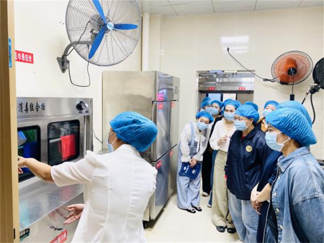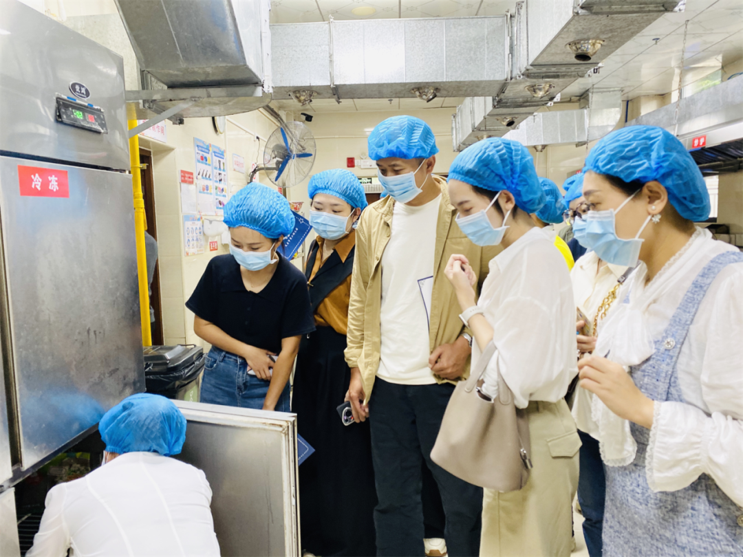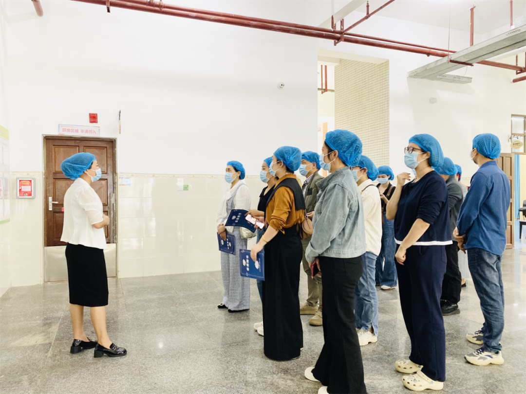 第三阶段:厨房现场观摩与试餐。杨薇副园长带领家委们实地走进厨房:详细讲解食品操作全流程、食材采购与储存标准、食品加工规范、卫生消毒流程及营养搭配逻辑,厨房团队全程协助答疑,直观了解工作台账、收支明细等膳食管理全流程,以“全透明”的展示让家长清晰知晓膳食管理细节。紧接着的“试餐与反馈”环节,家委们亲身体验餐食口味与质量并提出宝贵建议,为园所优化膳食服务提供一手参考。