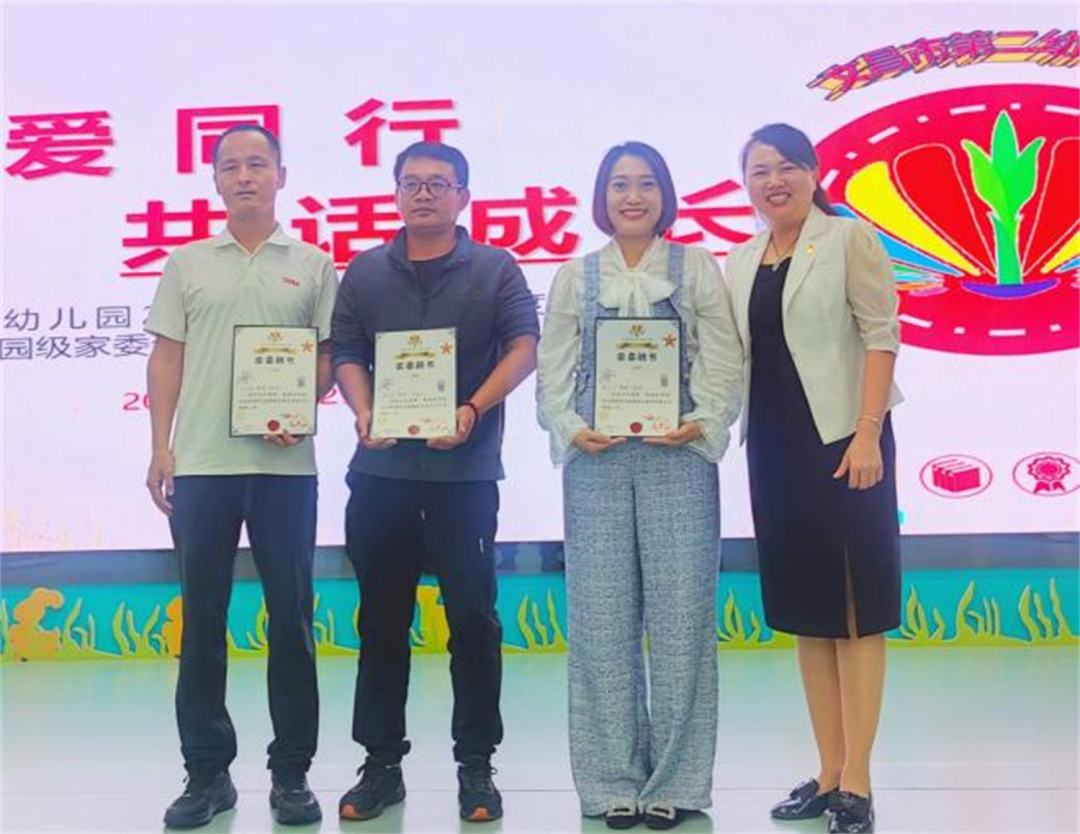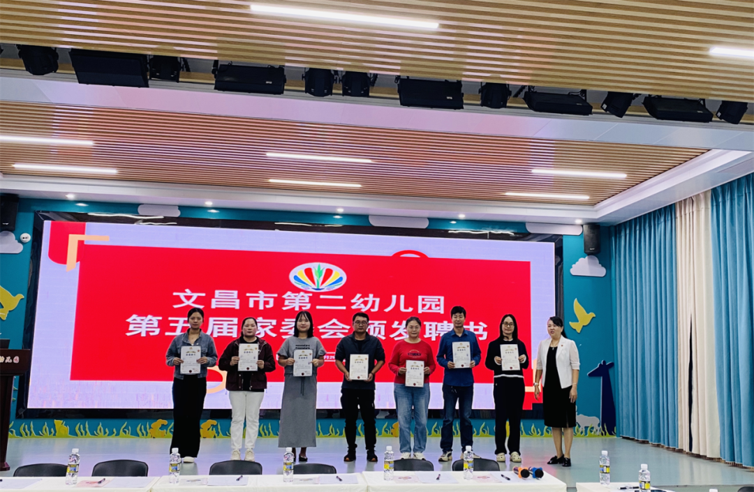 随后现场推荐并经园方确认家委会主任、副主任人选,三位园长共同为全体家委颁发聘书并合影,标志着园所民主管理机制进一步完善。
