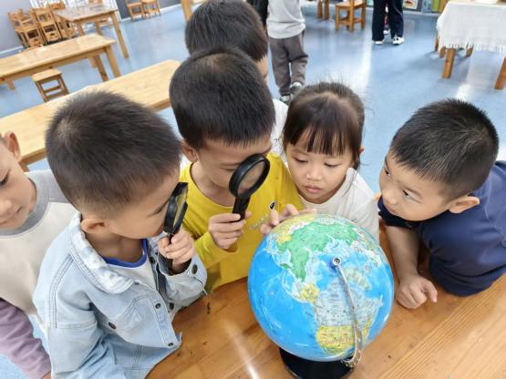诺诺说:在地球仪上找到了我们的中国,爸爸说中国地图像公鸡。