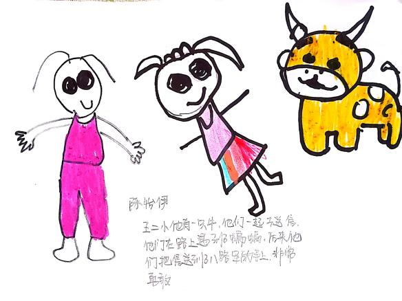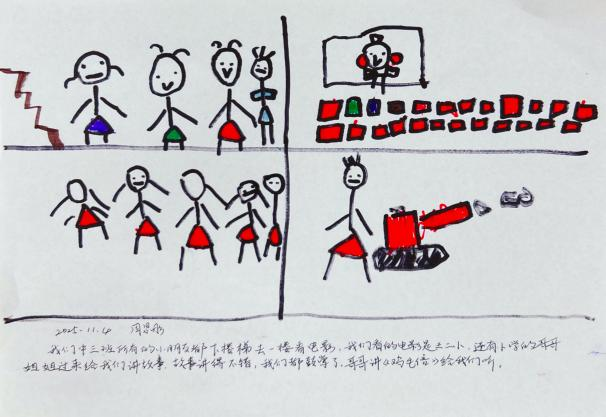 聆听哥哥姐姐们精彩的故事,孩子们纷纷通过绘画表征的形式分享着自己喜欢的故事情节。