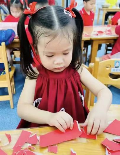 对于小班的孩子而言,“爱国”是一个宏大的词语。但他们对“爱国”的认知,是在亲身体验中慢慢获得的。我们的红色教育,就藏在温暖的每一天,藏在每一个小细节里。孩子们在衣服上,在花丛中,在卡纸上,在歌曲里,在国旗上……寻找着各种红色,感知红色的魅力。