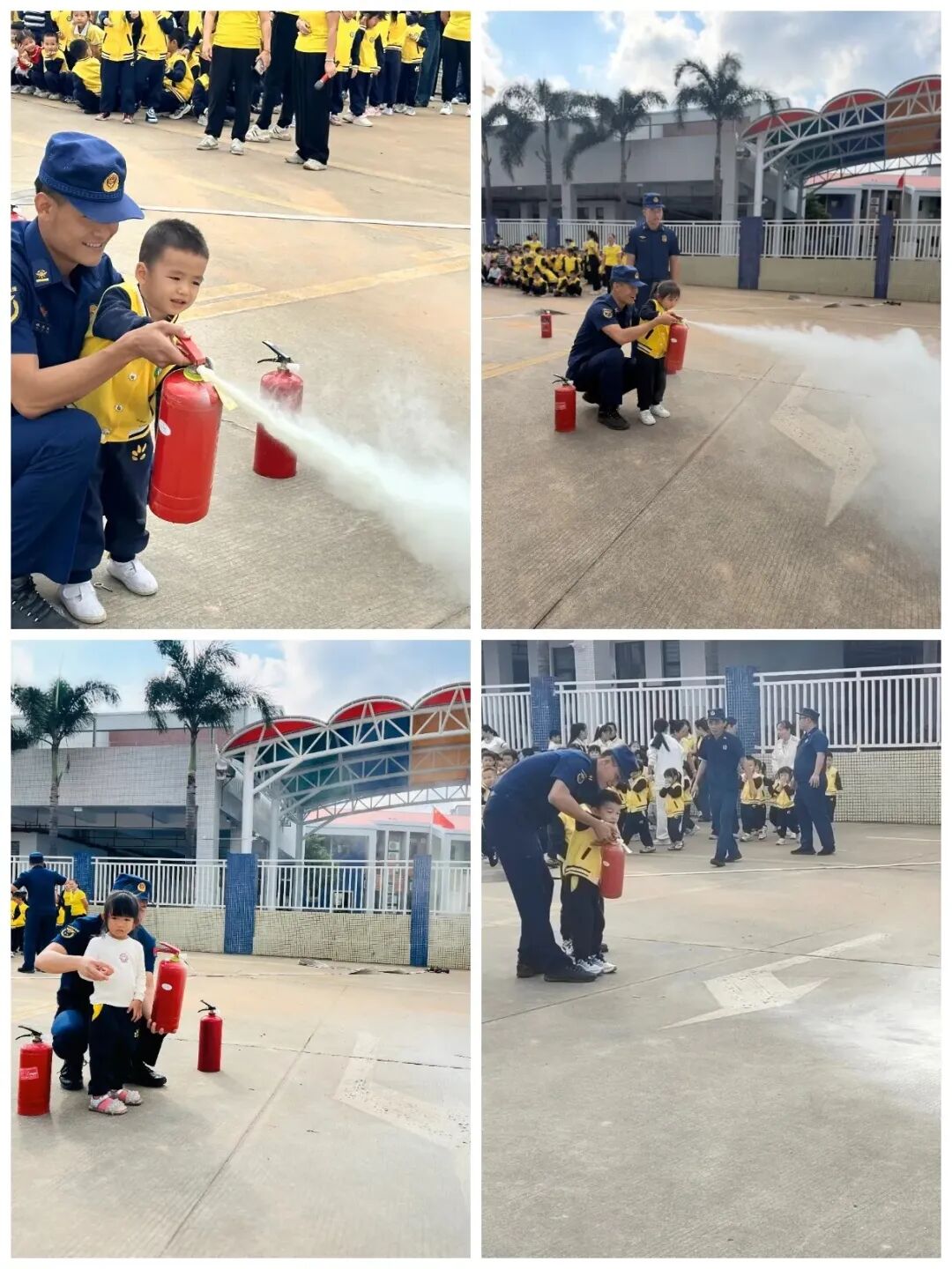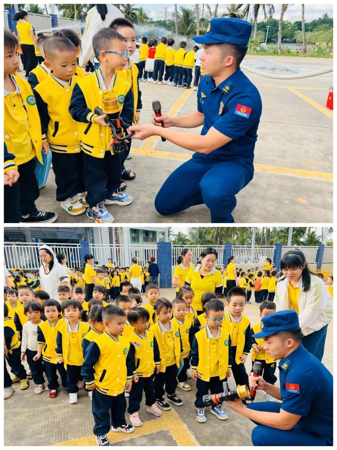 确保了全体教职工及幼儿安全撤离及无人员受伤后,文昌市消防救援支队消防叔叔为大家细致地讲解了灭火器的使用方法及注意事项,并现场和小朋友们进行消防安全小知识的问答。