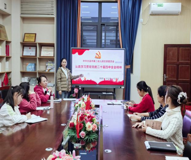 11月20日,我园党支部组织开展专题学习活动,聚焦深入学习贯彻党的二十届四中全会精神,紧扣高标准建设海南自由贸易港战略部署,围绕四中全会公报中的10个高频词,引导全体党员立足学前教育本职,深度研讨全会精神与教育实践的融合路径,凝聚以党建引领教育高质量发展的思想共识。