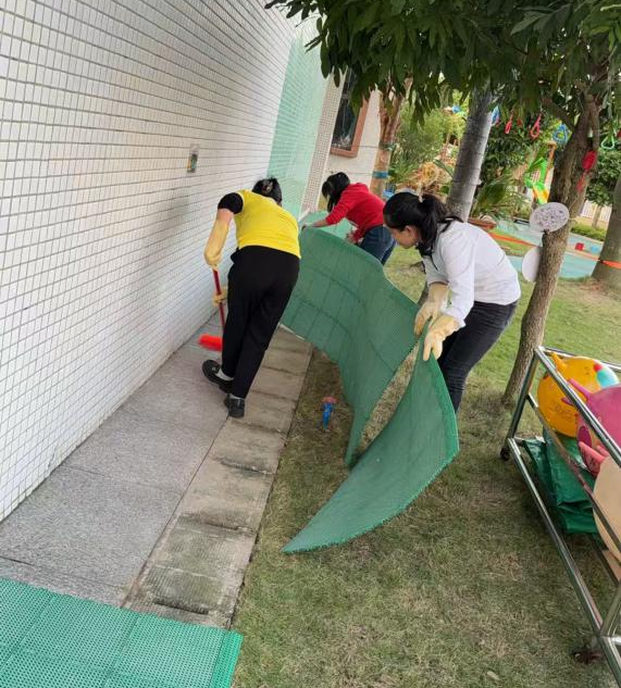 同时,我园组织全体教职工开展全园大扫除活动,大家以高度的责任意识投入行动,分工协作、细致清扫,覆盖园区教室、活动场地、功能室、走廊、卫生间等各个区域,精准清理卫生死角,全方位消杀病菌隐患,用实际行动为幼儿的健康成长保驾护航。