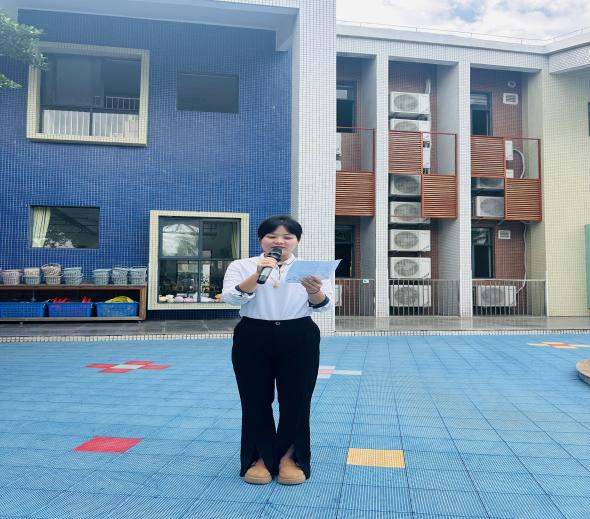 11月24日早上,迎着清晨的朝阳,幼儿园全体师幼齐聚操场,举行庄严的升旗仪式。活动中,欧韩倩楠小朋友作为代表进行国旗下讲话,主题为《冬季健康小提示》,并向全体小朋友介绍冬季来临了,要多喝水、多吃蔬果,同时也要做好保暖工作,多参加户外活动,增强体质,做个健康的宝宝。