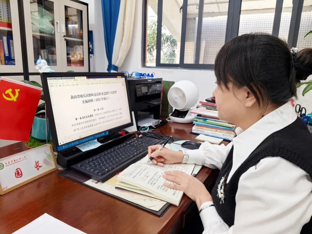 为强化师德师风建设,明确职业行为边界,我园组织全体教职工深入学习《海南省幼儿园教师违反职业道德行为处理实施细则(2025年修订)》。全体教职工认真研读细则核心要求,纷纷表示将以身作则,严守职业底线,践行育人初心,切实维护幼儿权益,共同营造风清气正的育人环境。