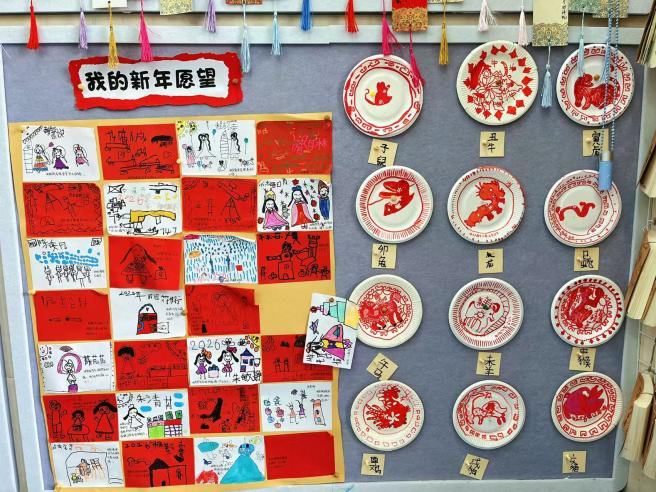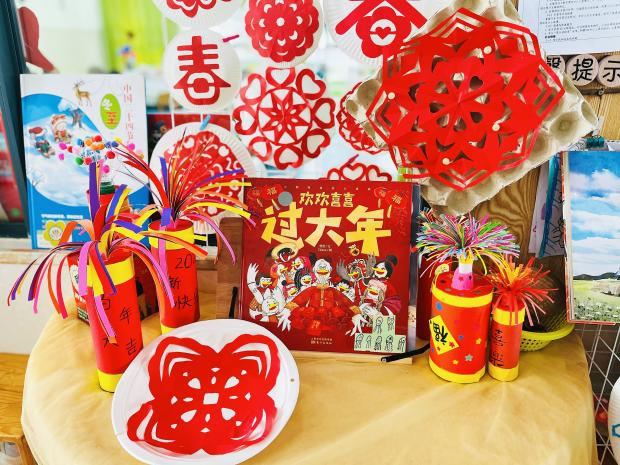 各班级以绘本为载体,开展“寻找新年”主题活动。各班教室张灯结彩,红灯笼、中国结、福字贴等元素错落点缀,处处洋溢着喜庆祥和的新年氛围。老师们精选《贴“福”字的来历》《团圆》等充满年味的绘本,通过生动讲述与趣味互动,带领孩子们在绘本世界里探寻年俗文化:听年兽的传说、说新年的祝福、绘心中的年味。