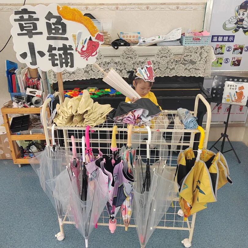 这场《章鱼先生卖雨伞》精读绘本系列活动,让孩子们收获的远不止对一个故事的理解。我们看到,原本不爱表达的孩子能主动讲述绘本片段,动手能力弱的孩子做出了创意满满的雨伞手工,就连整理玩具偷懒的孩子,也能认真折好雨伞。