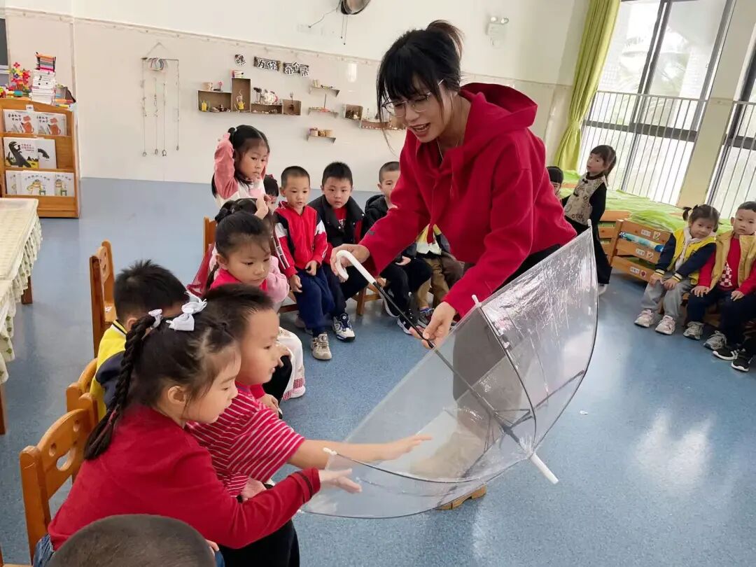 结合绘本里的“雨伞”元素,我们设计了两场科学探索游戏: