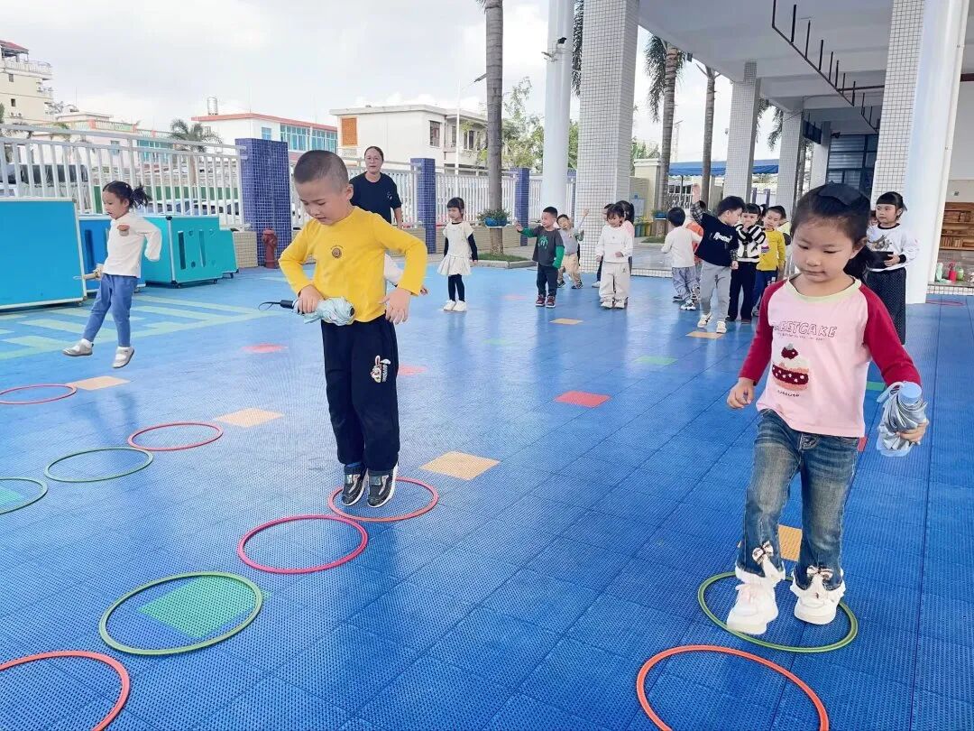 同时,从绘本的雨天场景延伸,我们开展了“雨伞接力跑”游戏。孩子们拿着小雨伞接力冲刺,不仅锻炼了肢体协调能力,还体会到团队合作的快乐,让绘本里的“雨伞”变成了运动场上的趣味道具。