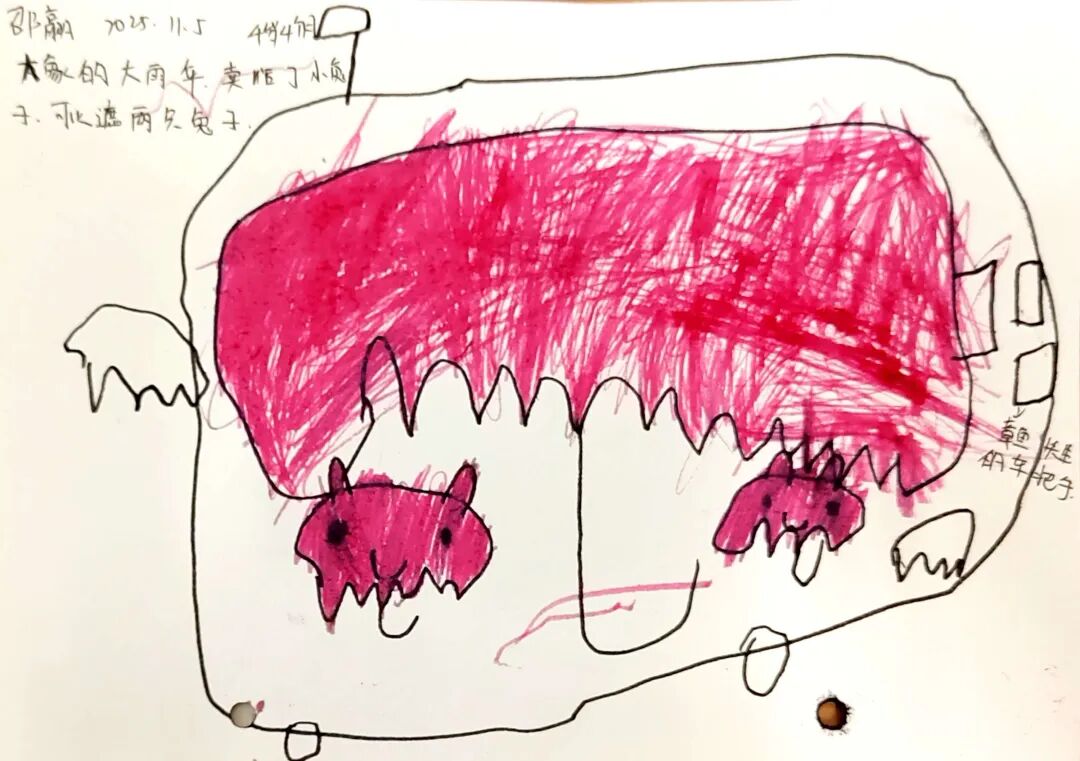 芊洁:大象的伞大大的、厚厚的,能把整个身体都盖住,还能挡住大风吹。