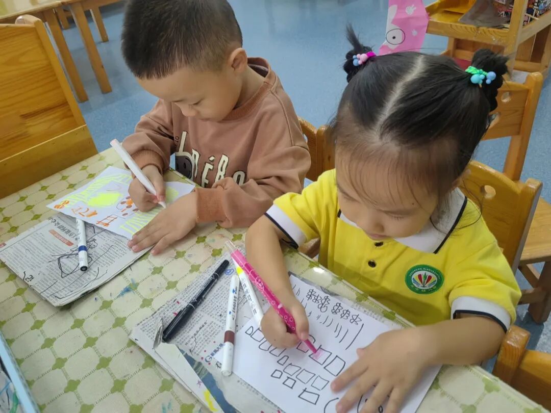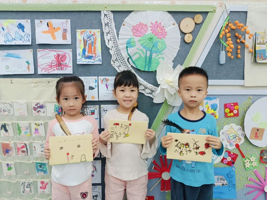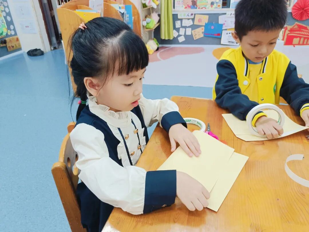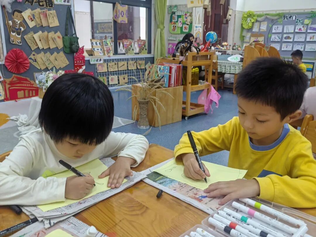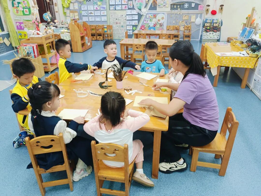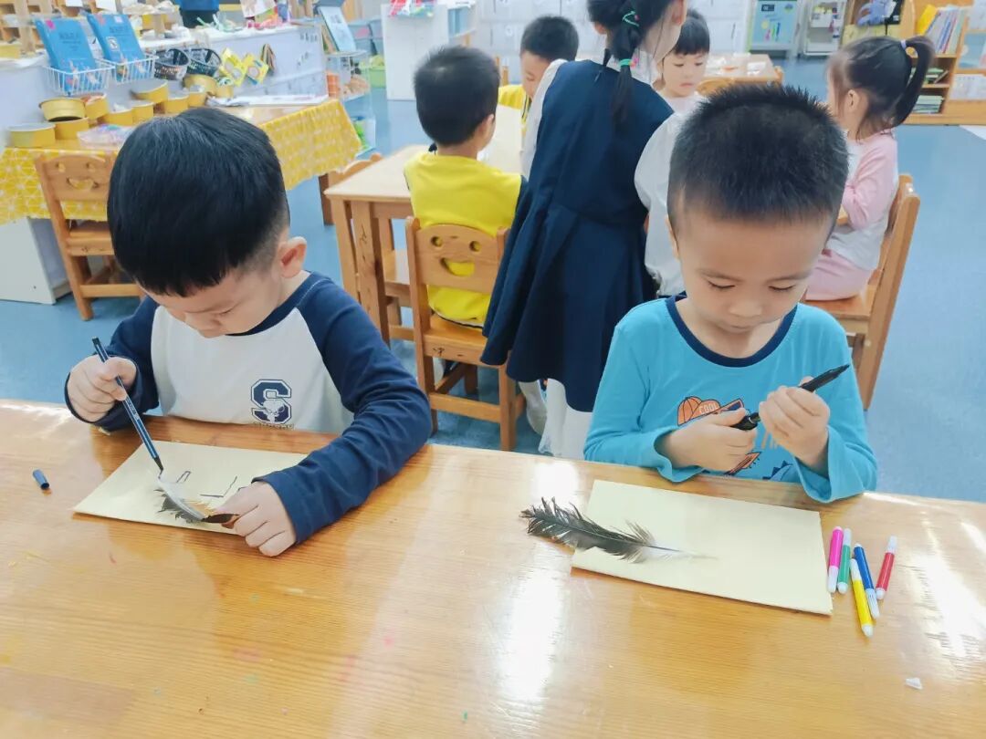 “我的鸡毛信要写给祖国妈妈,祝她越来越棒!”“我要在信上画国旗,还有勇敢的海娃!”彩色卡纸、羽毛、画笔齐上阵,宝贝们认真地写下心里的话,每一封专属鸡毛信,都藏着浓浓的爱国情。