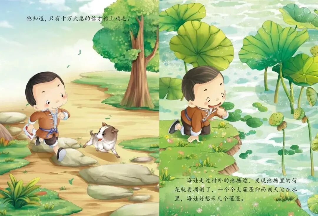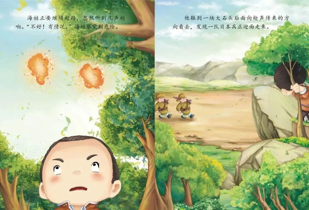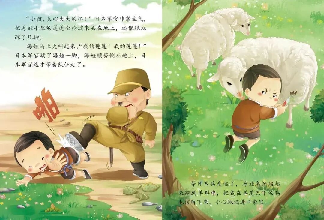 有个叫海娃的小朋友,他是村里的小交通员,手里总拿着一封插着鸡毛的信——这就是鸡毛信呀!鸡毛一插,就代表这封信特别紧急、特别重要,不能弄丢也不能耽误。海娃要把鸡毛信送给八路军叔叔,路上遇到了好多危险的敌人,但他一点都不害怕,靠着聪明和勇敢,最后成功完成了任务!这是一本藏着勇敢、责任和爱国心的绘本,每一页都在讲“保护重要的东西,帮助需要的人”。