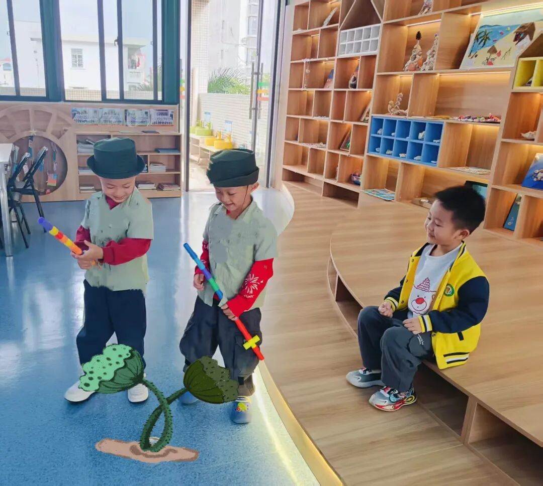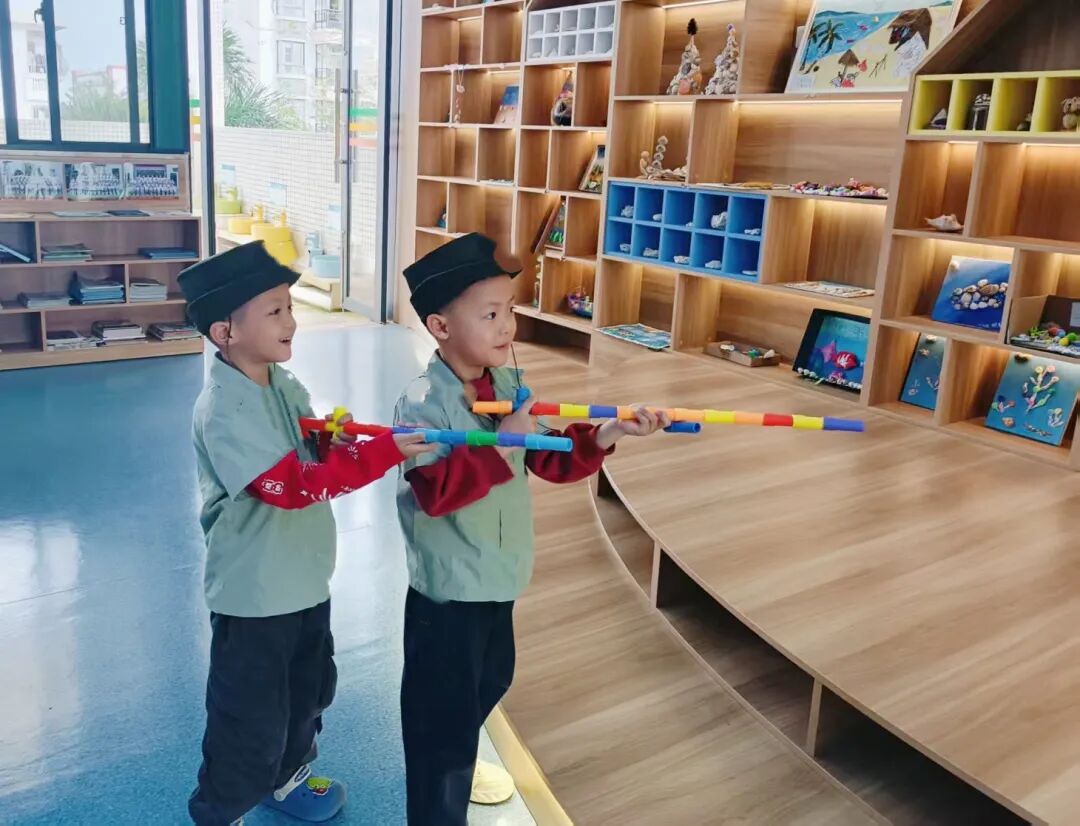 “我来当海娃!”“我当八路军叔叔!”“我来当敌人!”宝贝们跟着故事节奏,演绎着海娃送信的惊险过程,模仿着海娃的勇敢模样,在表演中更深地读懂了故事里的责任与担当。