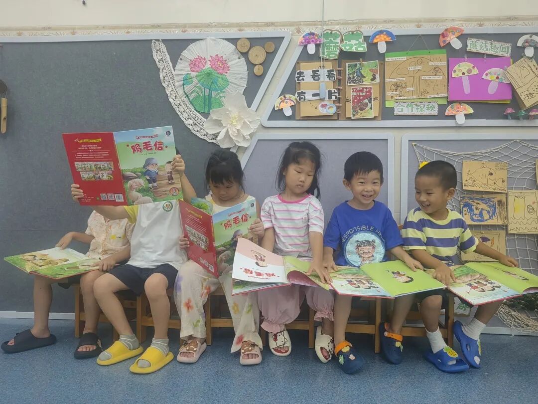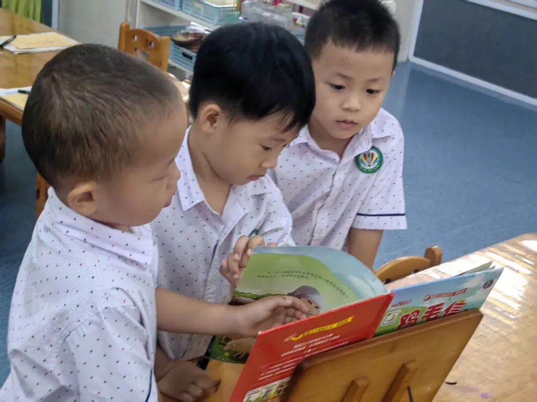 平时饭前、饭后、睡前、自主时间,大家也都喜欢去翻阅《鸡毛信》的绘本,有的自己沉浸在故事中、有的选择跟小伙伴一起讨论喜欢的情节。