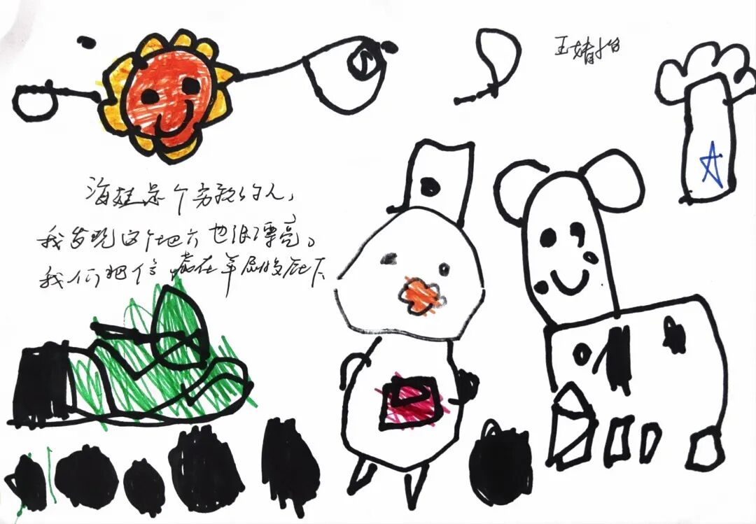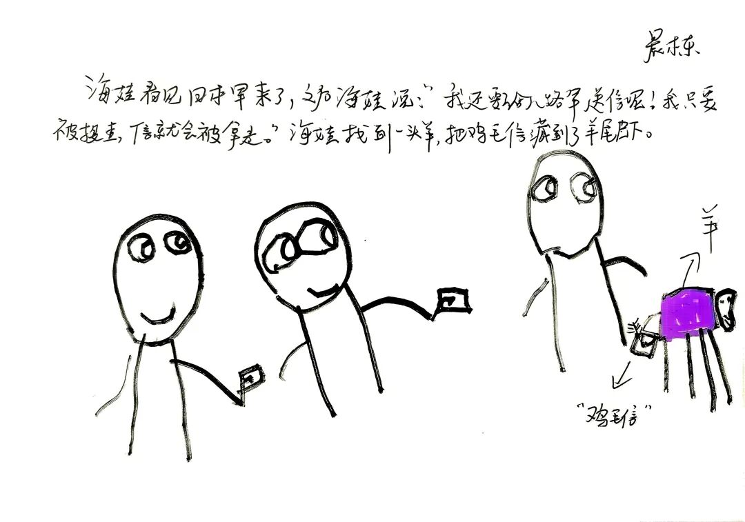 “老师,海娃把信绑在羊尾巴上啦,好聪明!”