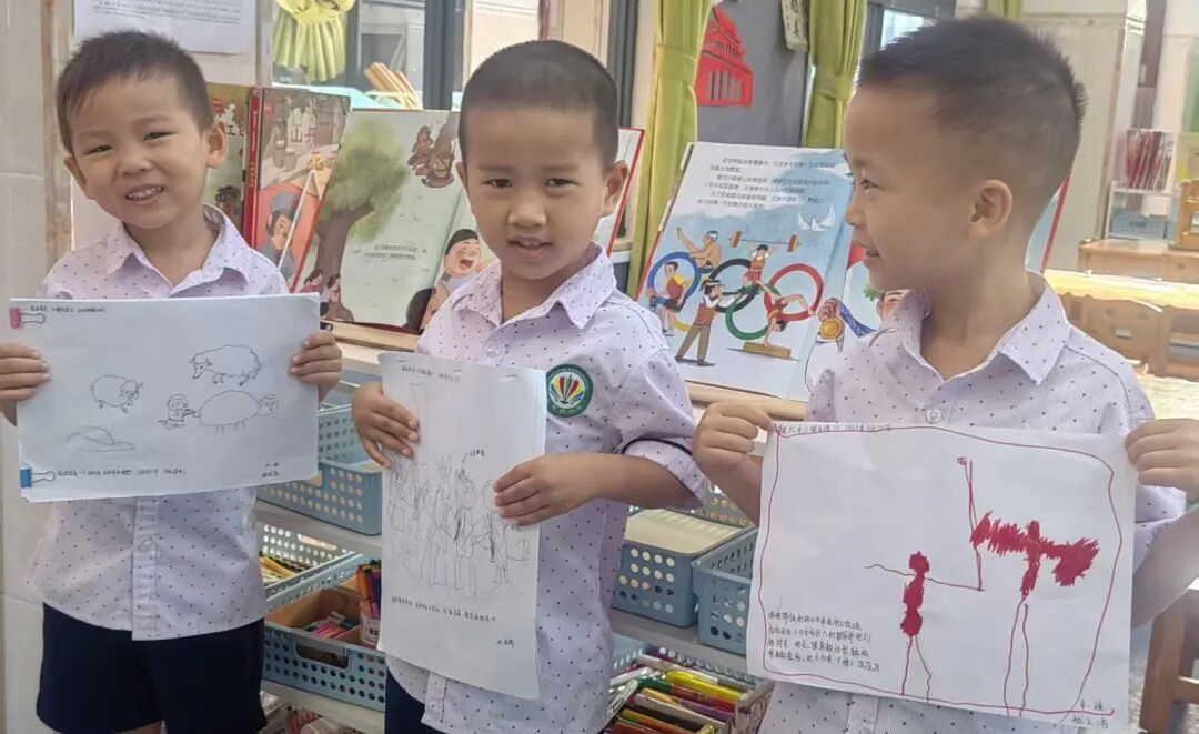 “我要画海娃把信绑在羊尾巴上的样子!”“我要画海娃和敌人周旋的场景!”宝贝们挑选故事里最爱的片段,用画笔还原出来,为接下来的表演做准备,小脸上满是期待。