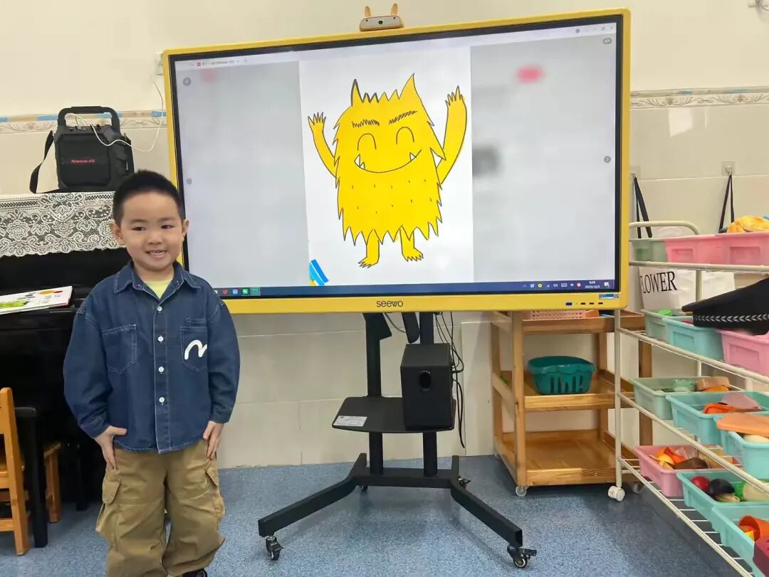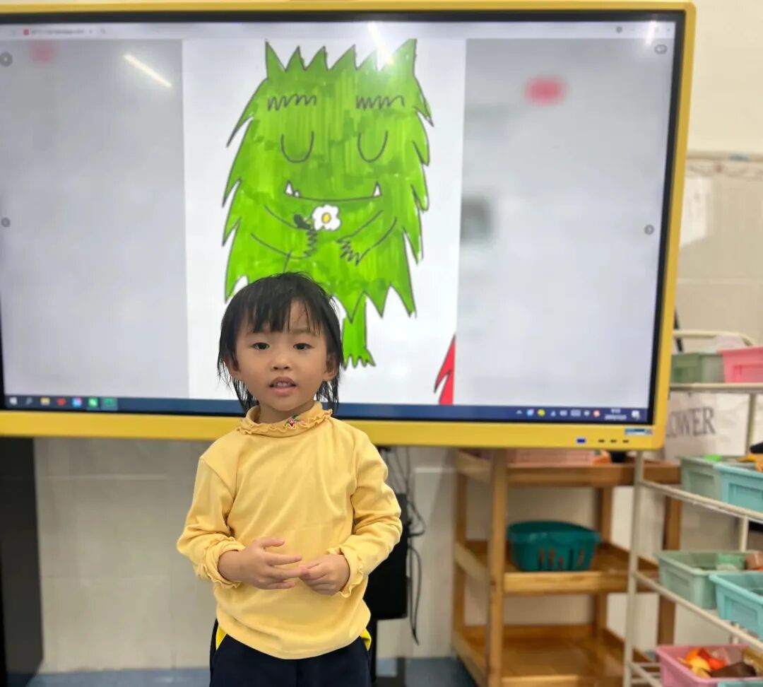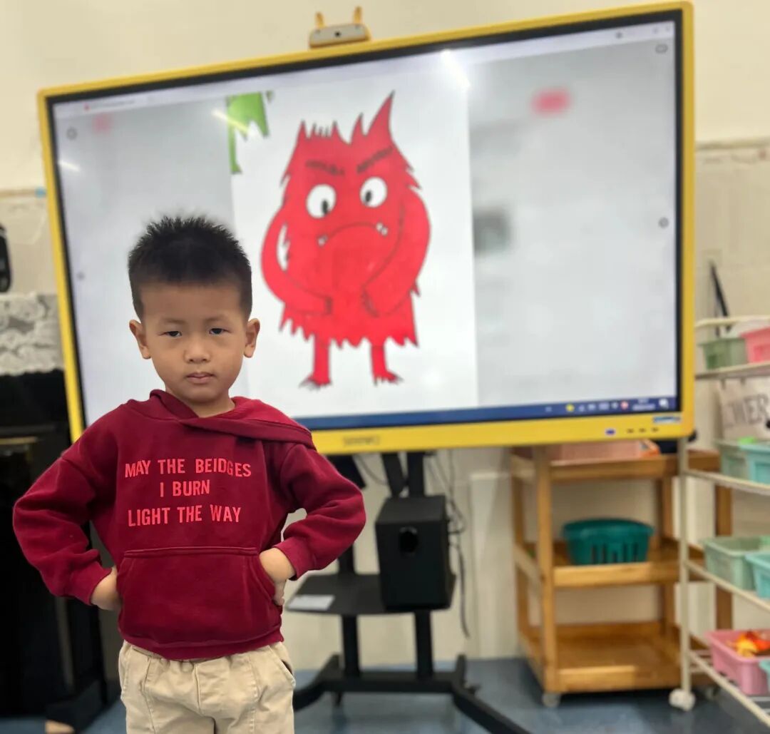 伴着孩子们对“情绪小怪兽”的认知慢慢深入,我们始终鼓励孩子大胆表达内心的喜怒哀乐。通过绘本《我情绪小怪兽》,小朋友读完绘本后有很多很多的想法,他们通过颜色和形状,画出了自己的想法,还有他们的创意。