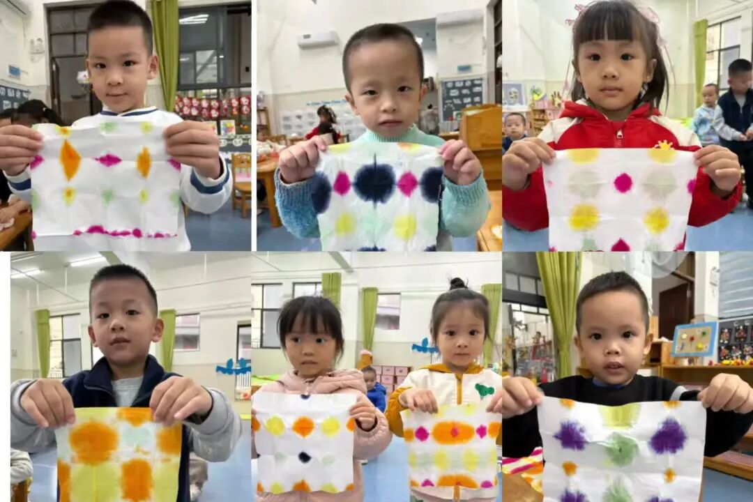 创色环节让幼儿从色彩认知走向创意表达。手指画、扎染与手工活动中,孩子们不仅巩固了三原色混合知识,更在自由创作中展现独特想法。未来需提供更多生活化材料,鼓励幼儿将色彩创意延伸到日常游戏中。