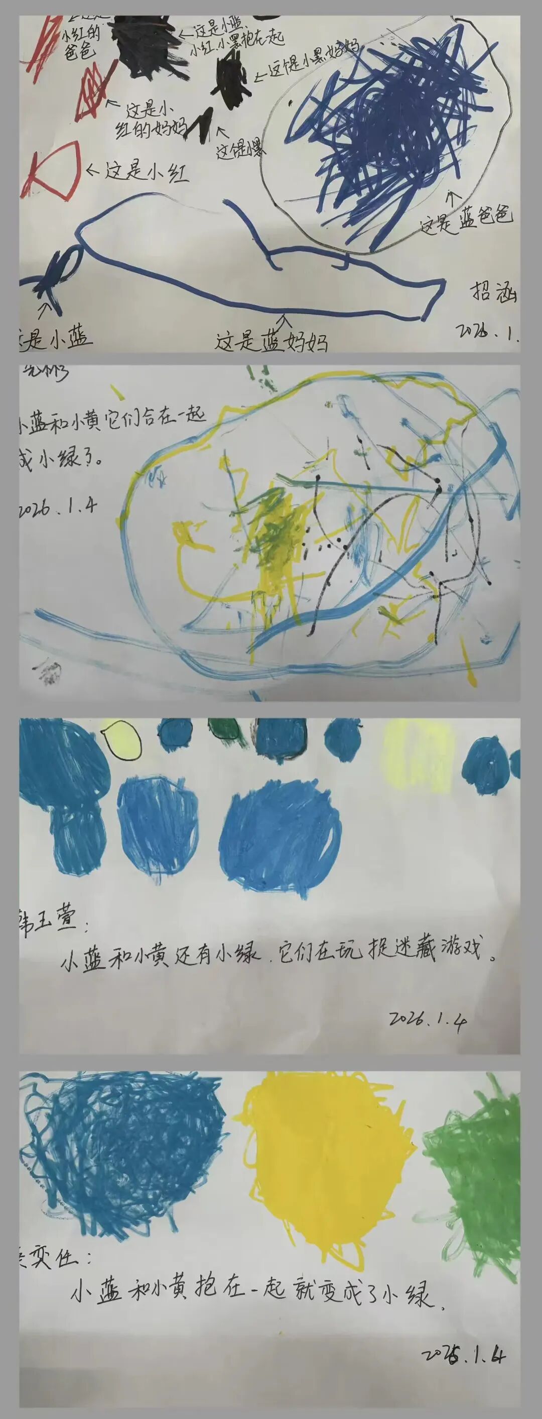 本次活动以绘本《小蓝和小黄》为切入点,通过识色,探色,创色,玩色四个环节,让幼儿在亲身体验中感受色彩的奇妙。孩子们在手指画,手工和户外游戏中主动探索,不仅掌握了三原色混合的知识,还提升了动手能力与合作意识。未来将继续结合生活场景设计更多色彩活动,让幼儿在玩中学,感受自然与艺术的融合之美。