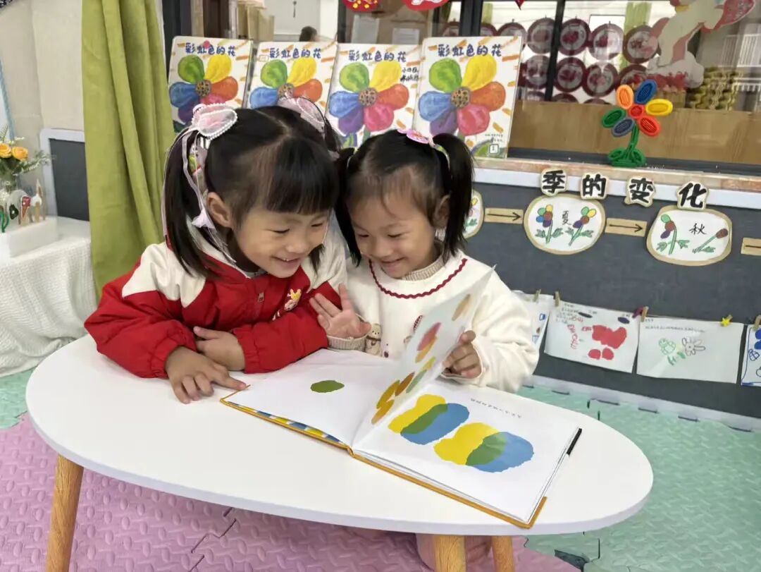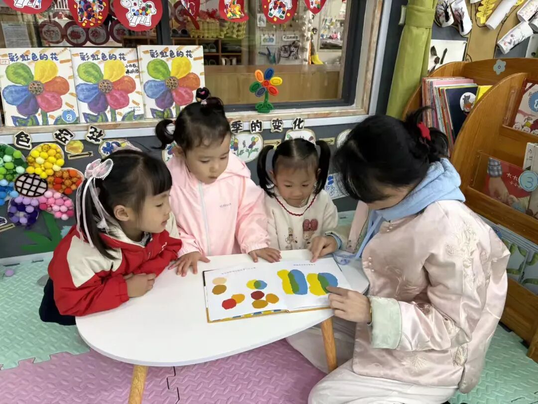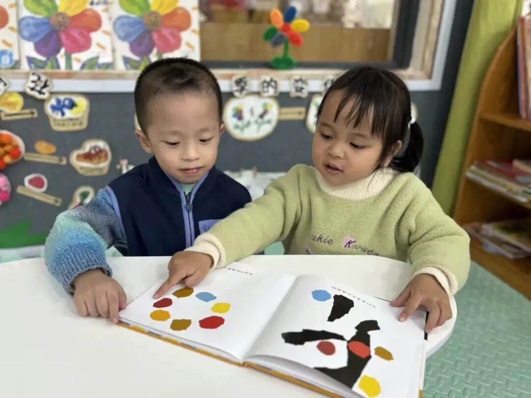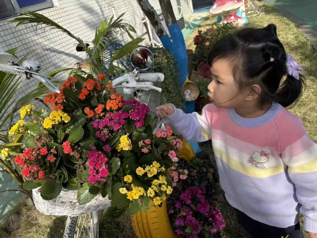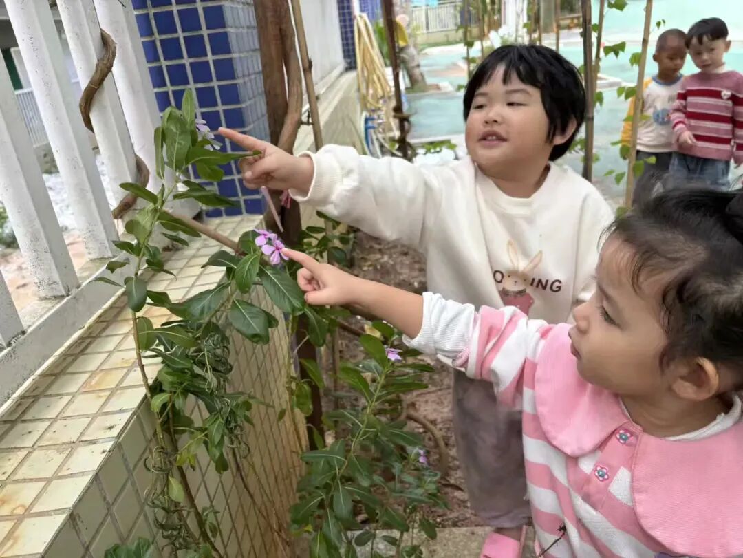 孩子们牵着小手走进幼儿园的户外花园开启寻色之旅。“这里有粉粉的花,像小蓝和小黄抱在一起变的颜色吗?”阳光下,金黄、橘红、玫紫的花朵簇拥在一起,孩子们蹲下来凑近观察,有的指着黄色花瓣喊“找到小黄啦”,有的发现蓝白相间的树干叫着“这里有小蓝的影子”,大自然里的色彩成了孩子们最好的“活绘本”,他们用小手触摸、用眼睛捕捉,把绘本里的色彩故事变成了真实的探索体验。