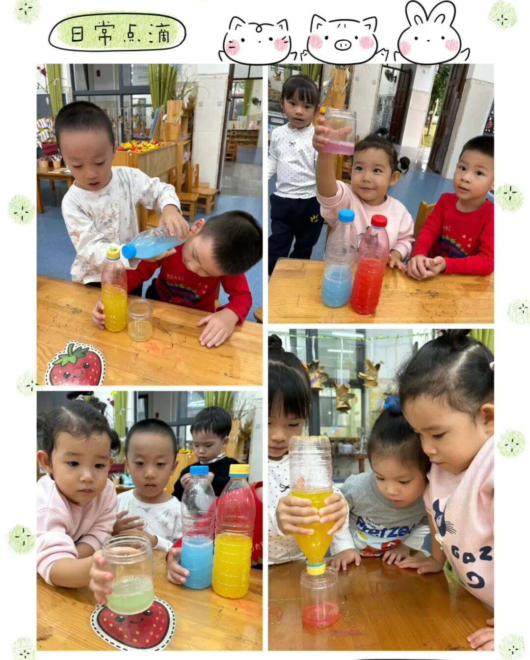 孩子们化身小小科学家,专注地开展色彩水实验。有的小朋友小心地将彩色水缓缓倾倒,有的高高举起装着彩水的杯子展示成果,还有的聚精会神观察彩水混合、流动的奇妙变化。小脸上满是好奇与认真,在动手操作中探索着色彩和液体的趣味奥秘,沉浸式体验着科学实验的快乐。