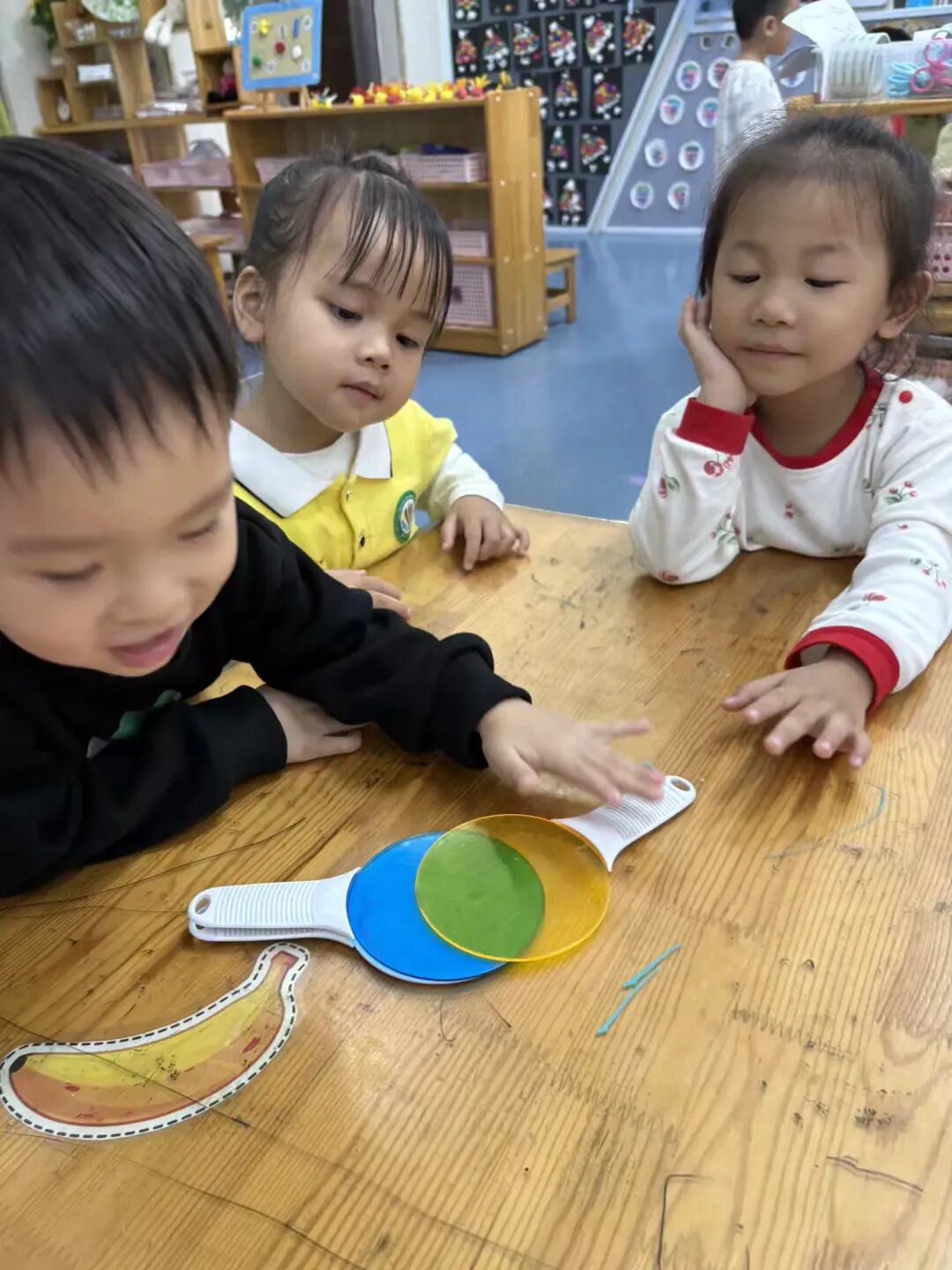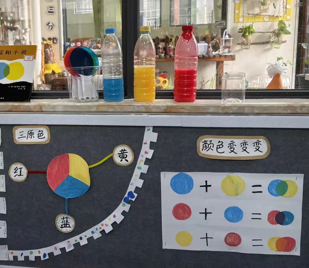 幼儿生活的世界绚烂多彩,颜色的变幻更让他们满心惊奇,借助三原色的两两搭配,便能变化出橙、绿、紫三种新颜色的科学奥秘,孩子们在轻松愉悦的氛围中,大胆尝试、积极探索,尽情体验色彩变幻的乐趣。