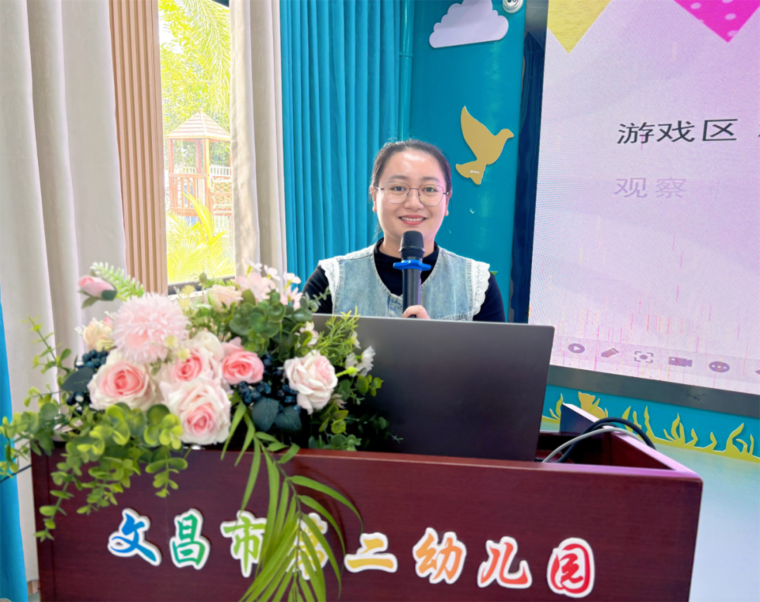 分享结束后,云永蕾副园长对本次游戏观察案例进行了小结并提出了建议,她强调跟随海南省教育厅第一届游戏大赛的教研导向,幼儿自主游戏现场“站稳十分钟”的观察是下一步我们需要深入学习的方向。