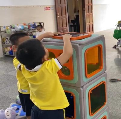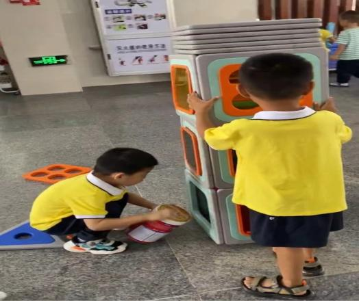 作为观察者和支持者,我始终尊重他的游戏意图,接纳他的情绪宣泄;当他没有力气拉开粘贴在一起的磁力板主动寻求老师帮助时,我及时给予帮助;当游戏时有同伴争抢材料,我选择“退后观察” 和 “适时等等”,相信儿童具有一定的社会交往和问题解决能力;当他因同伴干扰和身高导致无法继续往上垒高导致游戏难以推进而选择推倒时,我没有指责并提供了情感支持,而非急于评判结果,这不仅保护了他“想垒高”的主动探索欲望,更帮助他在冲突与合作中实现了游戏经验的重组与提升,有效推动了个体的深度学习,尊重儿童游戏主体地位的表现。