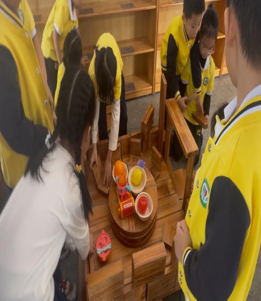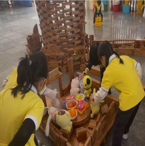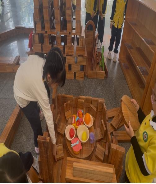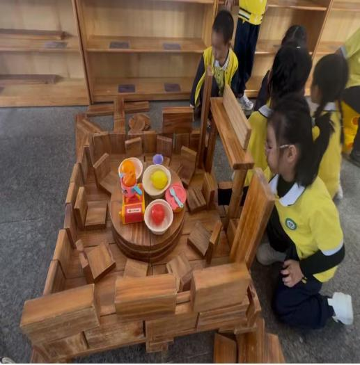 其一,突破“成品执念”,看见探索的核心价值。以往我常以成人审美衡量游戏成败,而欧芯玥反复调整地基稳固结构、孩子们面对门柱摇晃变换搭建方法、自主增减积木调整餐桌高度的过程,让我清晰认识到:幼儿的成长不在于拥有完美的“餐厅”,而在于试错中发展的问题解决能力,以及对积木承重、结构平衡的直观认知,这些经验是成人预设的“完美”无法替代的。