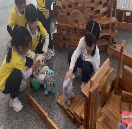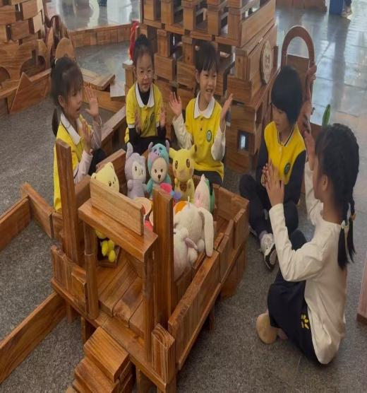 其三,跳出“结果评价”,关注社会性的隐性成长。当不再用“搭得像不像”评判游戏,便发现了孩子们的温暖与协作:王梦莎、德宸碰倒餐厅后,大家无责备反而共同重建,搭建中自发分工递积木、调结构,这些细节正是幼儿合作意识、同理心与规则意识的萌芽,远比成品更能彰显游戏的教育价值,把游戏的真正主动权还给孩子,让他们在自主、自由的游戏中实现有个性的发展。