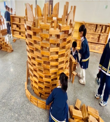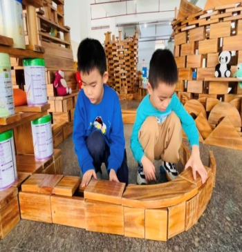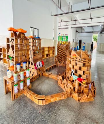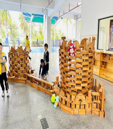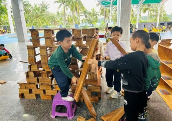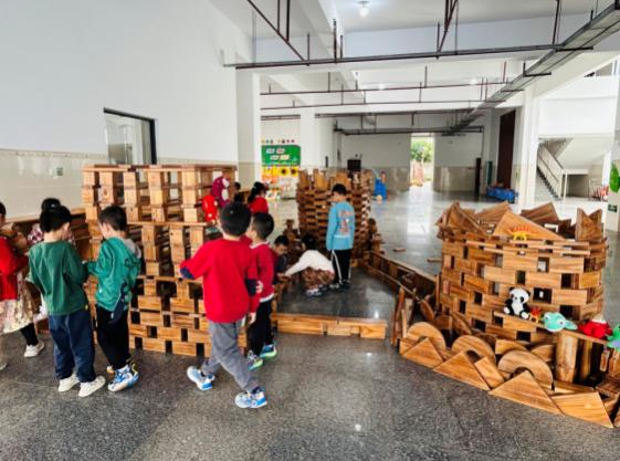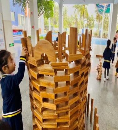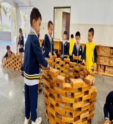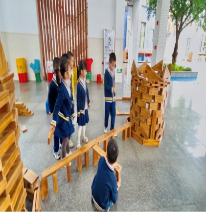 游戏背景:进入大班后幼儿的动手、沟通、协作、审美等各方面的能力都有了一定的提升,本月孩子们的户外游戏区是大厅的积木建构区,在本区域游戏开展前,老师给孩子们分享了世界各地不同风格的建筑物,引导幼儿了解了各种建筑的外形特点和建筑结构特点。还在阅读区为孩子提供搭建类绘本《建筑师的大创作》《积木搭城堡》等,让幼儿在平时的绘本阅读中了解一定的搭建技巧,为建构区游戏积累一定的经验。