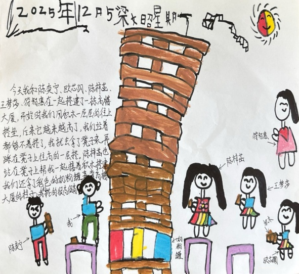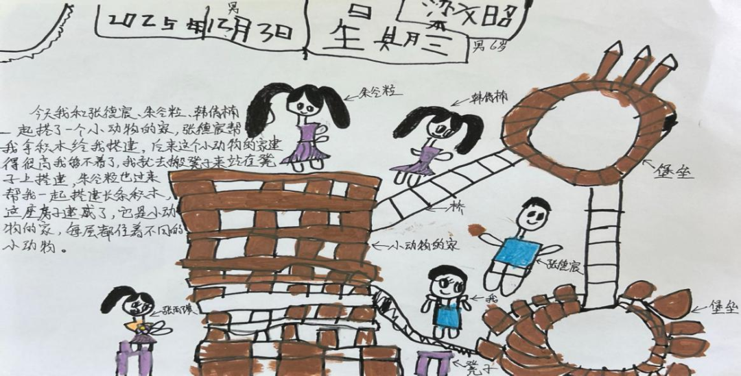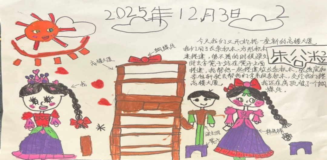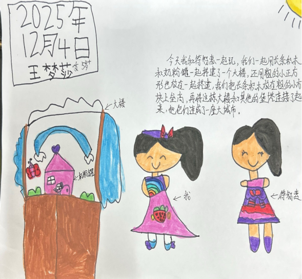 5—6岁幼儿已具备较强的自主意识、合作能力和创造力,他们的思维活跃且充满想象力。从游戏过程来看,幼儿能自主发起搭建主题,如文昭提议用长方体积木围成圆形、搭建高架桥连接两栋建筑,谷粒主动提出装饰楼顶、搭建围墙,这些行为都体现了该年龄段幼儿乐于探索、敢于尝试的年龄特点。以往我可能更关注幼儿搭建的最终成果是否“完美”,而忽略了他们在过程中展现的独立思考和主动探索精神。通过本次观察,我深刻认识到,儿童是主动的学习者和创造者,他们能根据已有经验自主规划游戏、解决问题,教师应充分尊重幼儿的主体地位,珍视他们在游戏中自然流露的想法和行为。