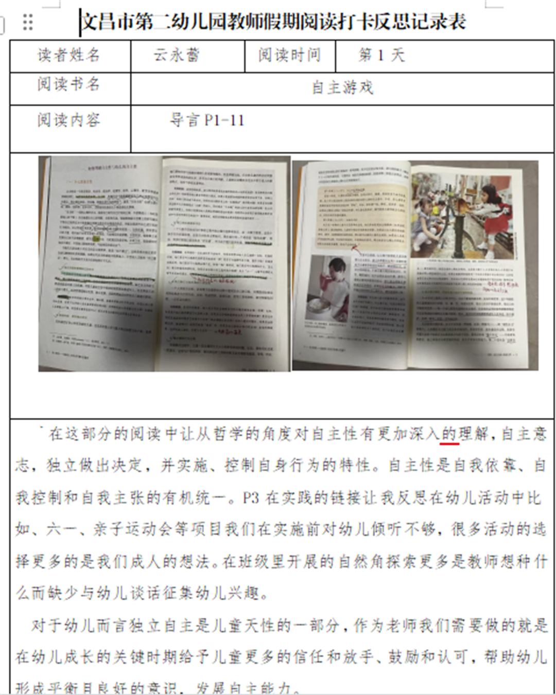 在“自主教育”理念的引领下,我们不断尝试将“自主”理念渗透到幼儿一日生活和课程中。该如何真正将活动的主动权交给孩子?教师应该做哪些支持?我们需要更深入的探究与学习。因此,进一步深化幼儿园自主教育实践,提升教师专业素养与保教能力,助力教师在假期实现理念更新与能力进阶,我园于2026年1月18日—24日组织全体教师开展《自主游戏》《自主生活》《自主学习》共读活动,确保每位教师都能将理论内化于心、外化于行,将“自主”理念落地生根。