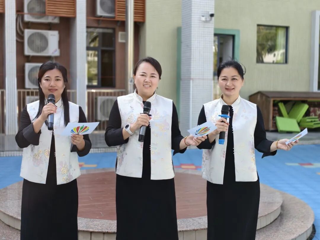 国旗下,大三班邢文子墨小朋友用稚嫩的声音送上马年祝福,愿大家身体健康、快乐成长,在新的一年里像小马驹一样勇敢奔跑,把美好的心愿说给春天听。
