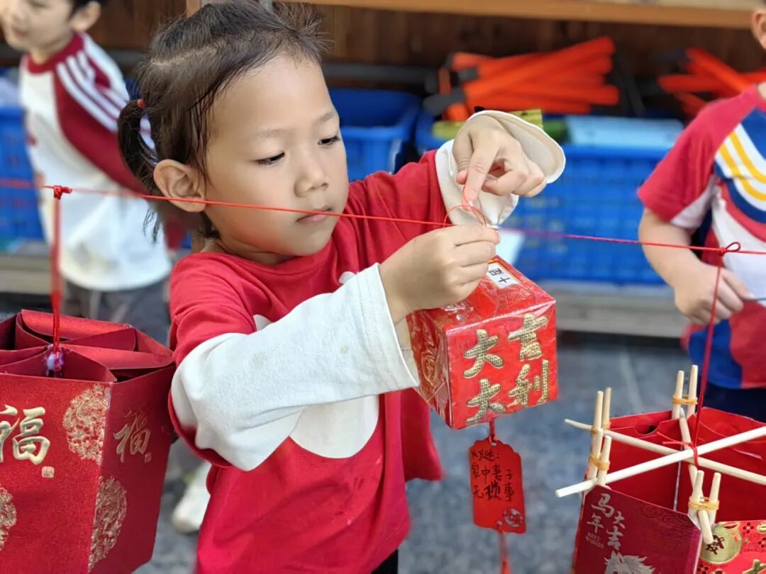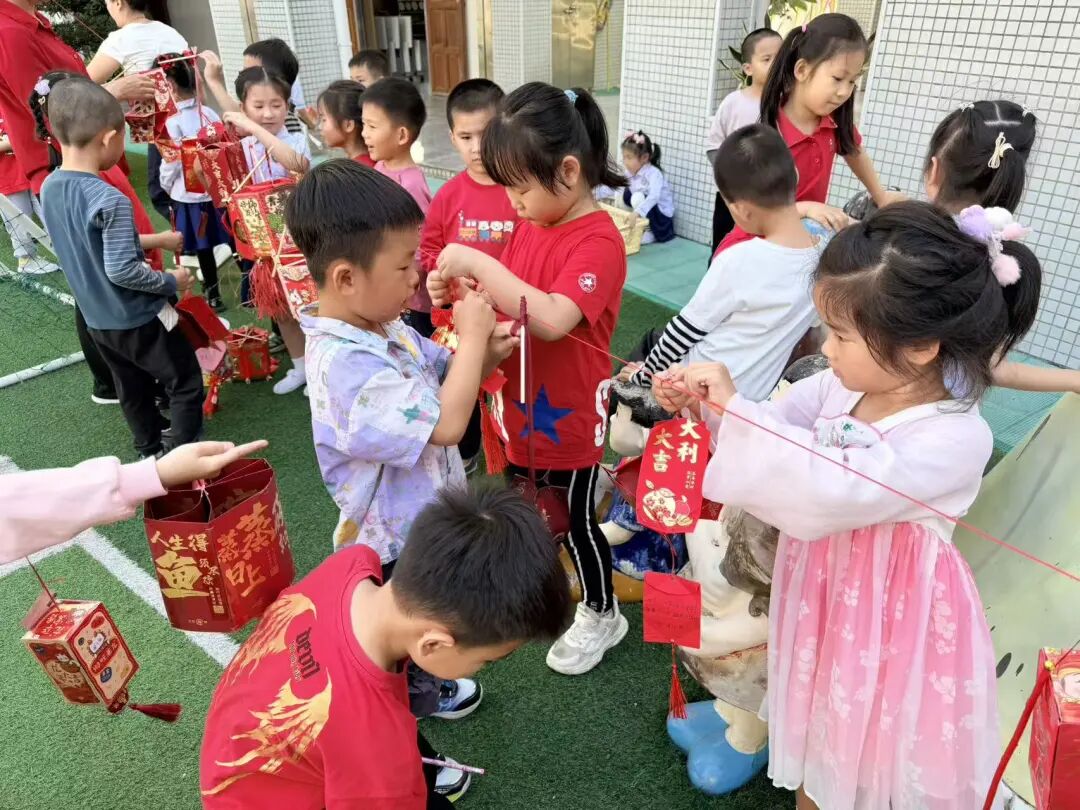 开学首日,孩子们手持寓意吉祥的红灯笼,在户外草坪上自主结伴、分工协作。红彤彤的灯笼不仅装点了幼儿园,更让孩子们在猜灯谜中充分感受元宵节的传统习俗。